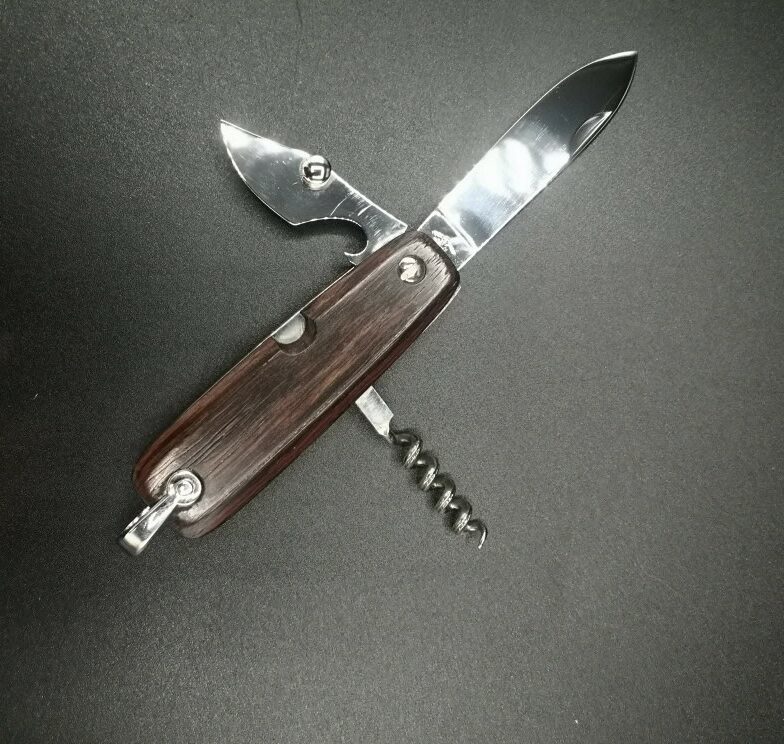 Canif 3 usi con manico in palissandro. Misura aperto 140 mm.
